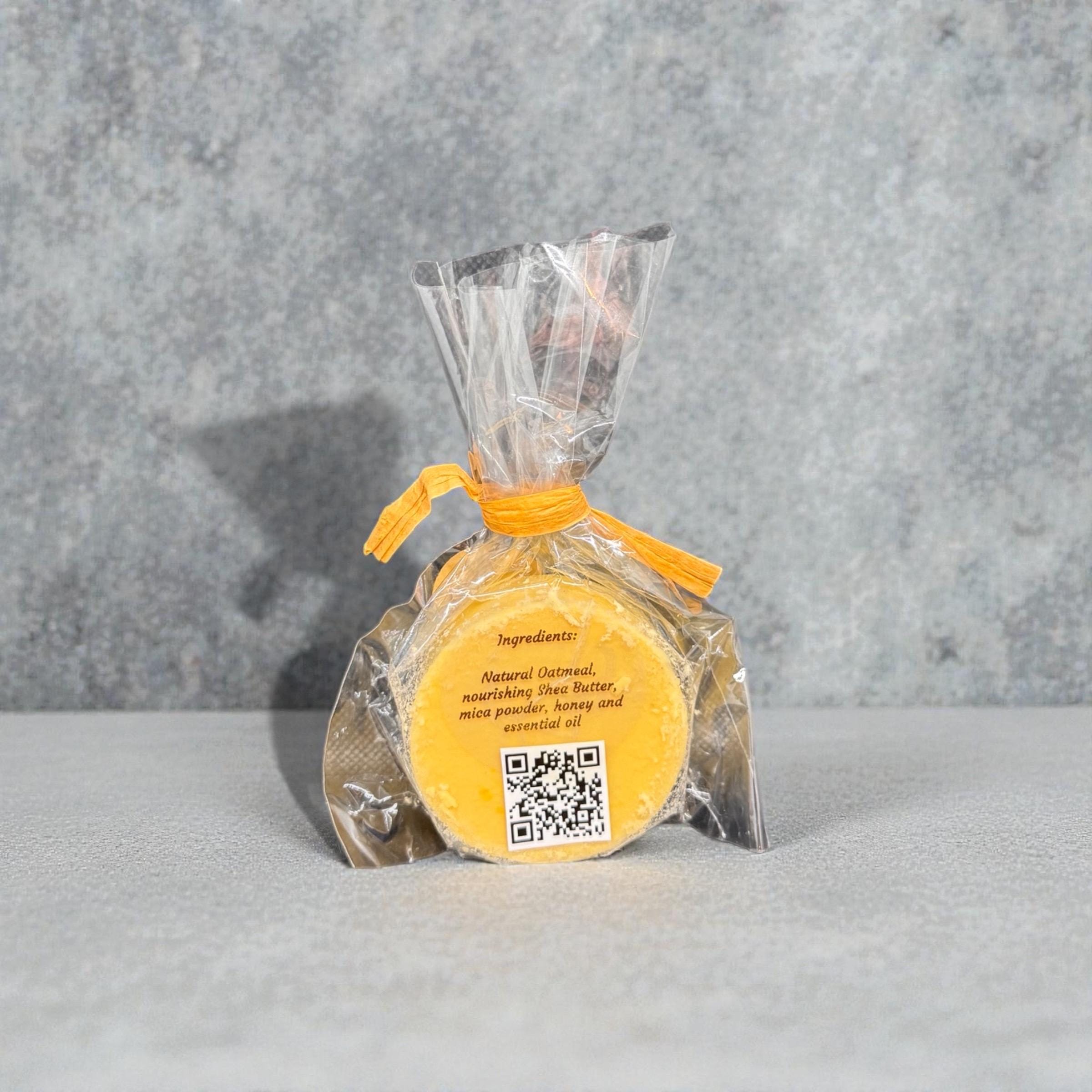 Ingredients: Shea butter, oatmeal, mica powder, honey and essential oil
